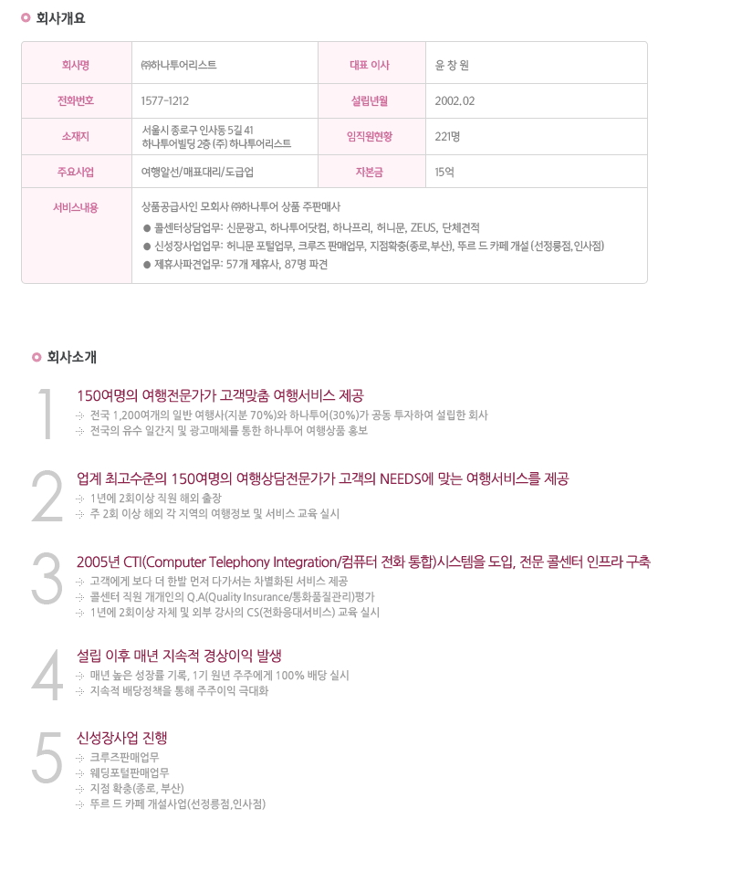 (ÁÖ)ÇϳªÅõ¾î¸®½ºÆ® ±â¾÷Á¤º¸