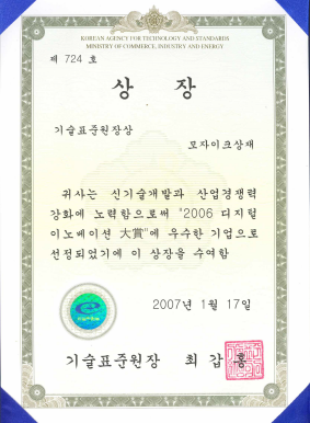2007³â 01¿ù : »êÀںαâ¼úÇ¥ÁØ¿øÀå»ó ¼ö»ó