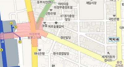 1È£¼± ÀÇÁ¤ºÎ¿ª 5¹øÃⱸ-³óÇù¹æ¸é, Á¦ÀϽÃÀå ¾Õ Æ°Æ°º´¿ø °Ç³ÊÆí